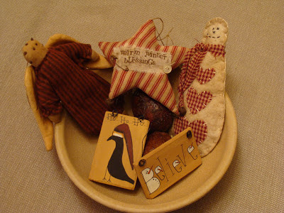 Here is the picture of Earlene's. She told me she bought them at a little shop nearby her home and even offered to pick up a pair and mail them to me after I enquired as to where she got them. What a sweet, sweet lady. I like the darker skin, but I didn't have any Walnut Stain. So mine are just very fair:) Go check her blog out www.primitivepassion.blogspot.com. She has some really beautiful and inspiring things to share. Also, if anyone knows who makes the pattern, I would love to be able to give them credit.